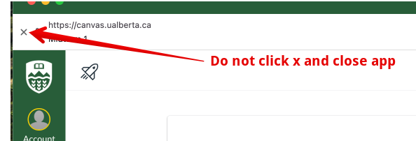otherwise, you should see this prompt to return to the home page: You'll now be prompted to install the SEM app: That this is a Chrome progressive web web app, which will be installed in your system's Chrome profile. The app will take an insignificant amount of disk space and can be removed any time by typing chrome://apps in chrome's URL bar. Additional guidlelines and information are available in the vendor-supplied guide Taking an exam using Smart Exam Monitor V2. Launching SEM ExamsOnce your device is validated and you select the SEM link in your course, you will see the SEM dashboard with any available exams. Click the "Take exam" button in the popup window: Follow the prompts to share your screen and camera, being sure to share your 'entire screen' as you did in the validation step. You'll likely be prompted to make a 20 second recording of your surroundings (you may need to scroll down to find the "record area" button: At the 'screen' step, find the "confirm screen share" button below the preview of your screen: Continue to follow prompts to take clear photos of your face and ID (preferably UofA OneCard). Once you've completed the steps, you can launch the exam from this window: The window that opens will prompt you to maximize it, and once you do so, it will redirect you to the Canvas quiz page, where you can paste the password and click Submit Once the Attempt Quiz to launch the exam. You can paste the password from the clipboard when prompted: When your exam is completed, click the "Stop recording" button or close the SEM window. Known Issues