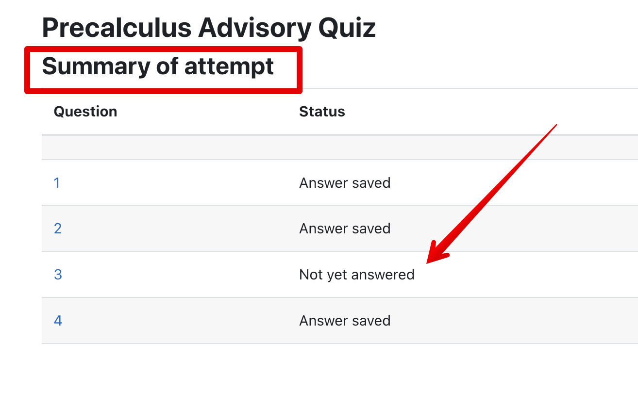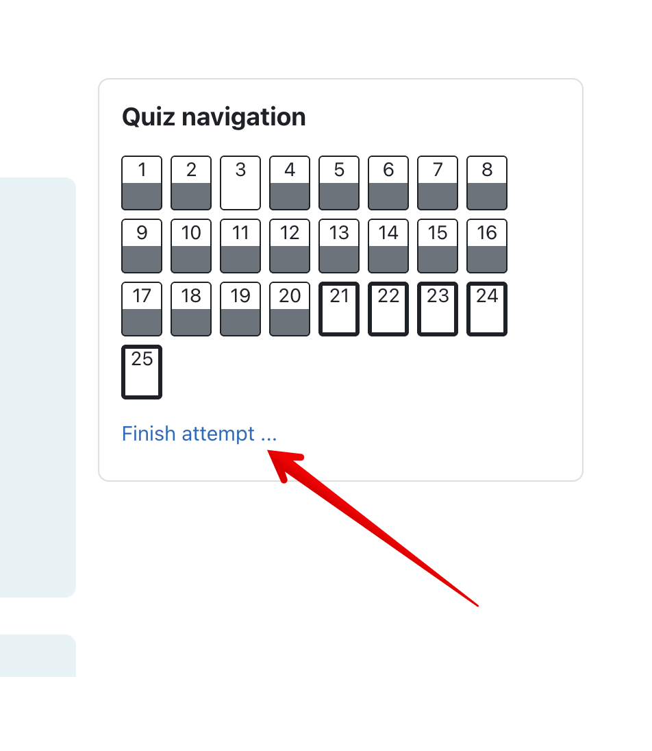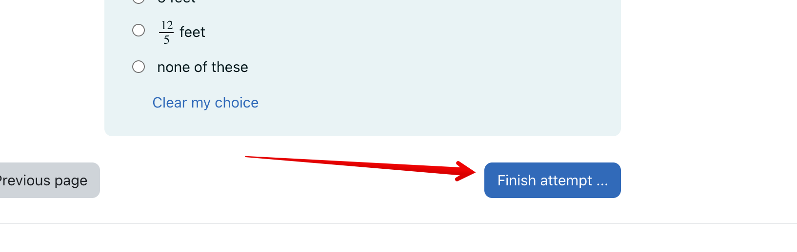 Once you have completed your work, you can click finish attempt either at the very bottom of the quiz: